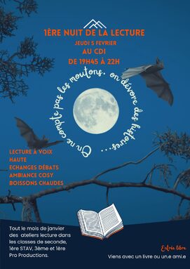 Par SOPHIE FABRE, publié le mardi 27 janvier 2026 14:27 - Mis à jour le mardi 27 janvier 2026 14:27Venez vous détendre en soirée avec des ateliers ludiques de lecture au CDI le jeudi 5 février de 19h45 au 22h, ambiance zen assurée ! -
