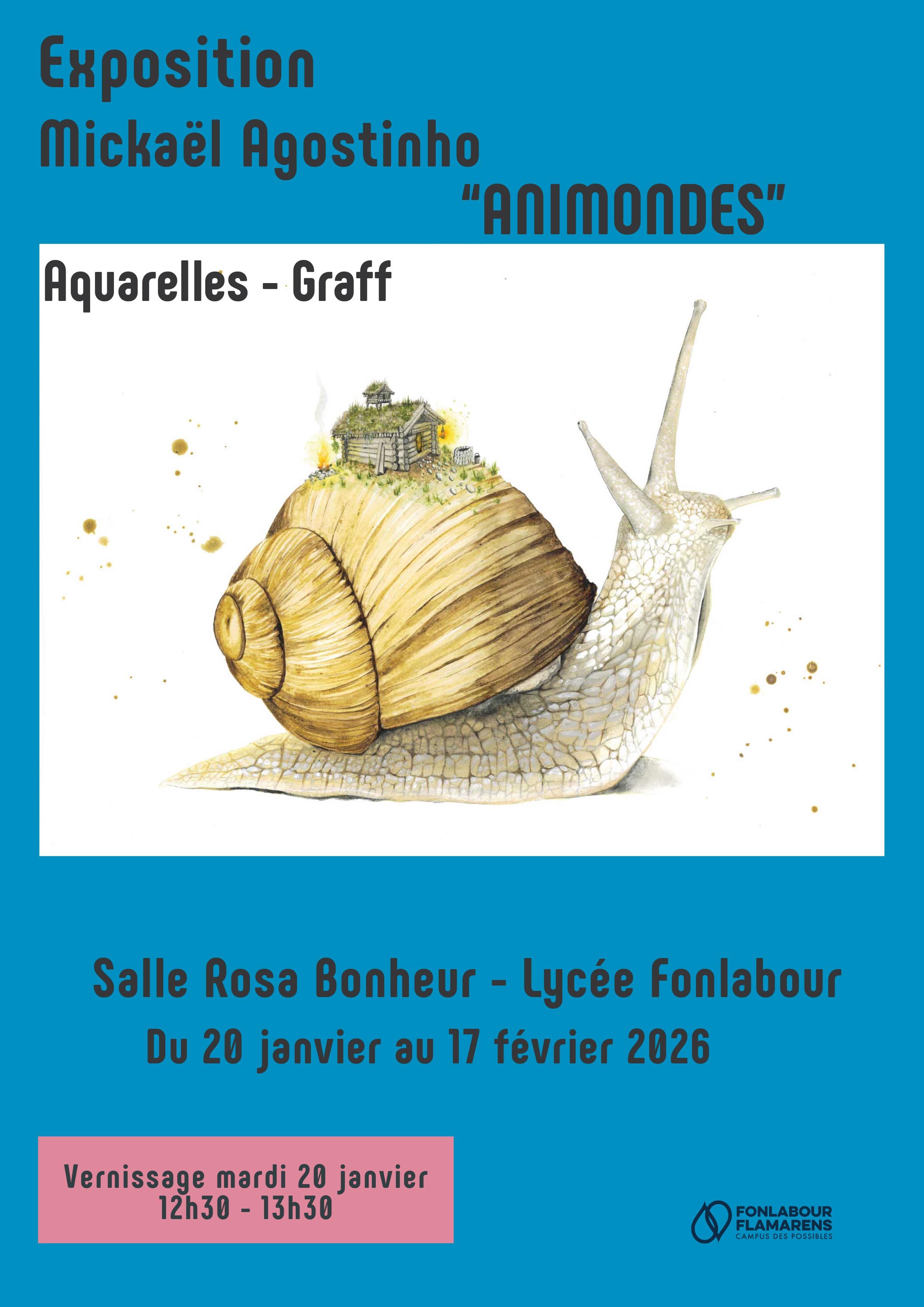 Mickael AGOSTINHO est le deuxième artiste invité à exposer dans la salle Rosa Bonheur depuis le début de l'année 2025-2026. Il y présentera "Animondes", une sélection de ses aquarelles et de ses graffs. Exposition à découvrir du 20 janvier au 17 février dans la salle Rosa Bonheur.