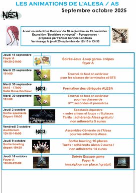 Par ISABELLE VILLEBRUN, publié le mercredi 17 septembre 2025 08:18 - Mis à jour le mercredi 17 septembre 2025 08:18Animations proposées aux élèves par les associations AS et ALESA -