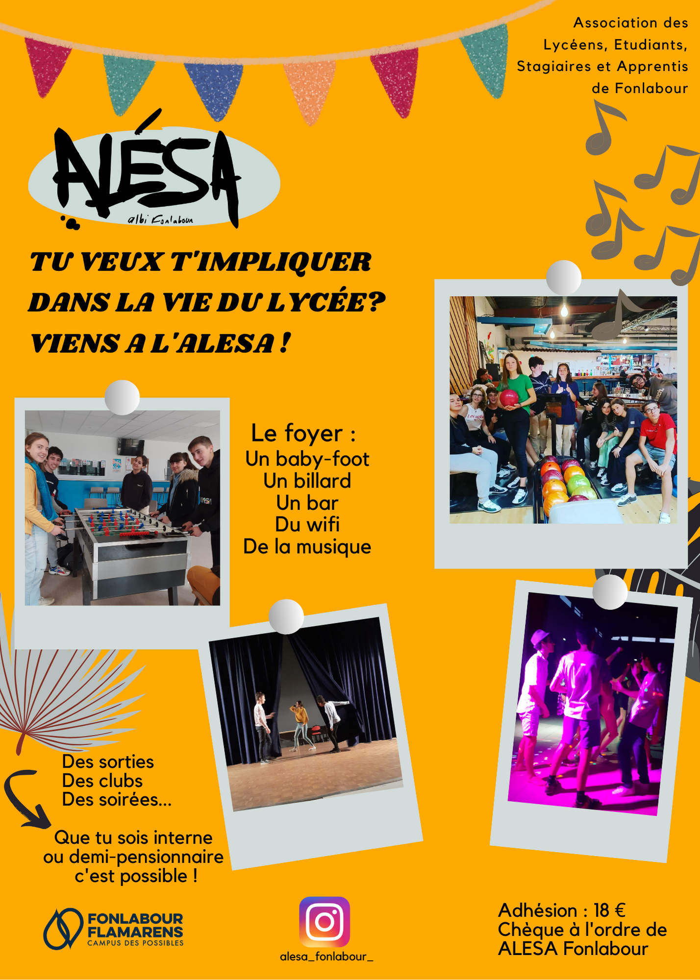 L'ALESA est l'association des apprenants du campus Fonlabour. Elle permet aux jeunes de s'impliquer dans la vie du lycée et de bénéficier de tarifs réduits pour les sorties de loisirs et culturelles.